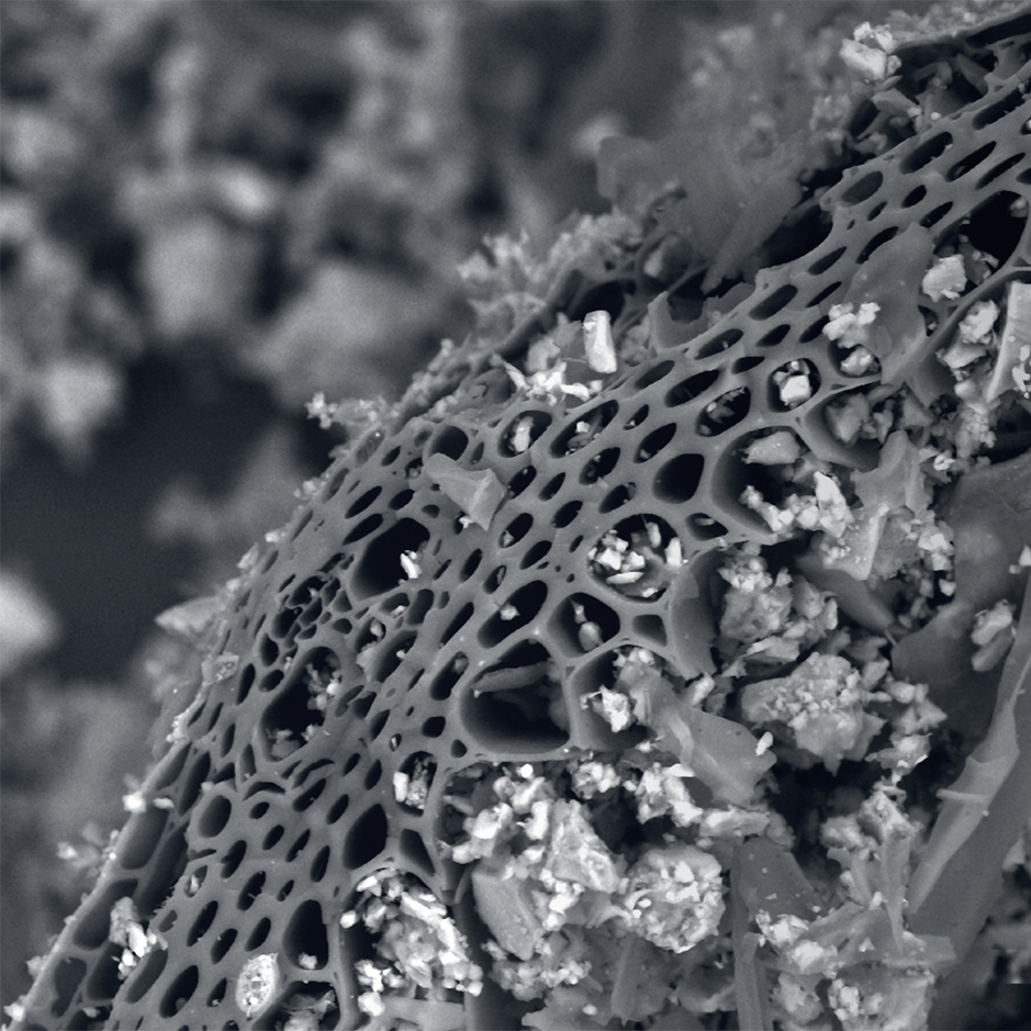 Biochar tiny pores will soak up nutrients and water, creating the perfect home for microbes.